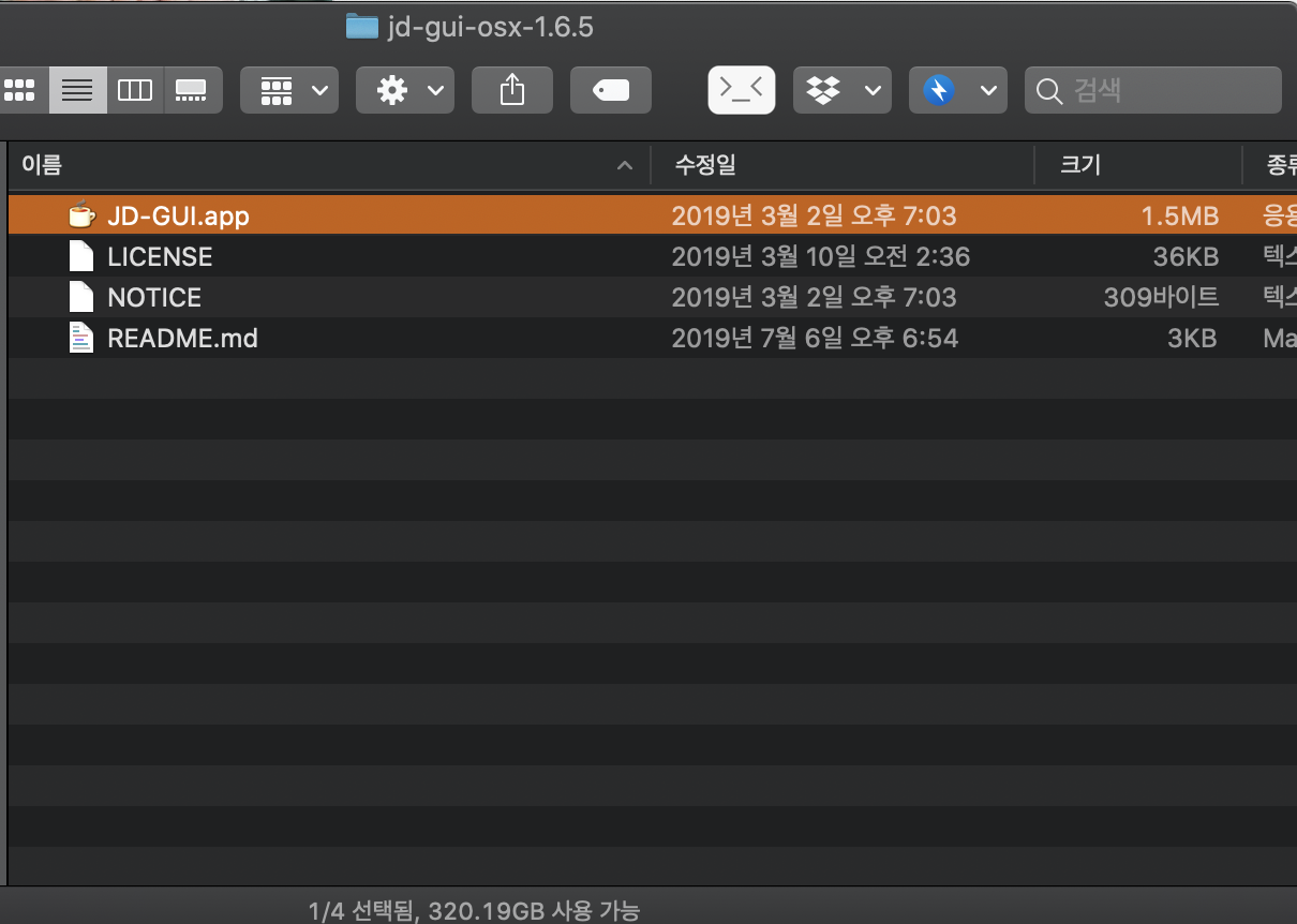 JD-GUI 에서 jd-gui-osx-1.6.5.tar 파일을 다운로드 받습니다.