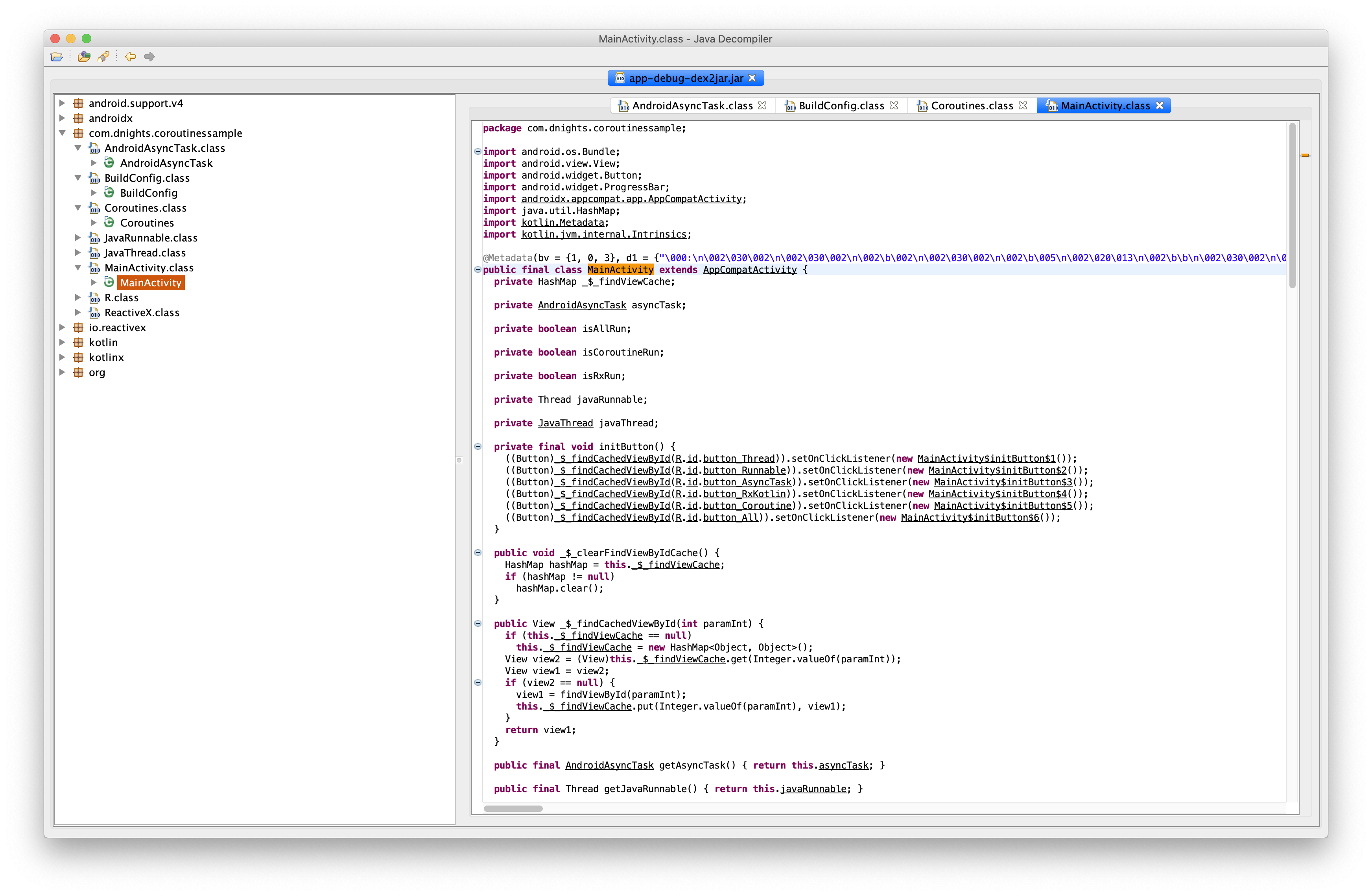 The “Java Decompiler project” aims to develop tools in order to decompile and analyze Java 5 “byte code” and the later versions. JD-GUI is a standalone graphical utility that displays Java source codes of “.class” files. You can browse the reconstructed so