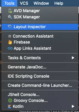 상단 Tools -> Layout Inspector 를 선택합니다.