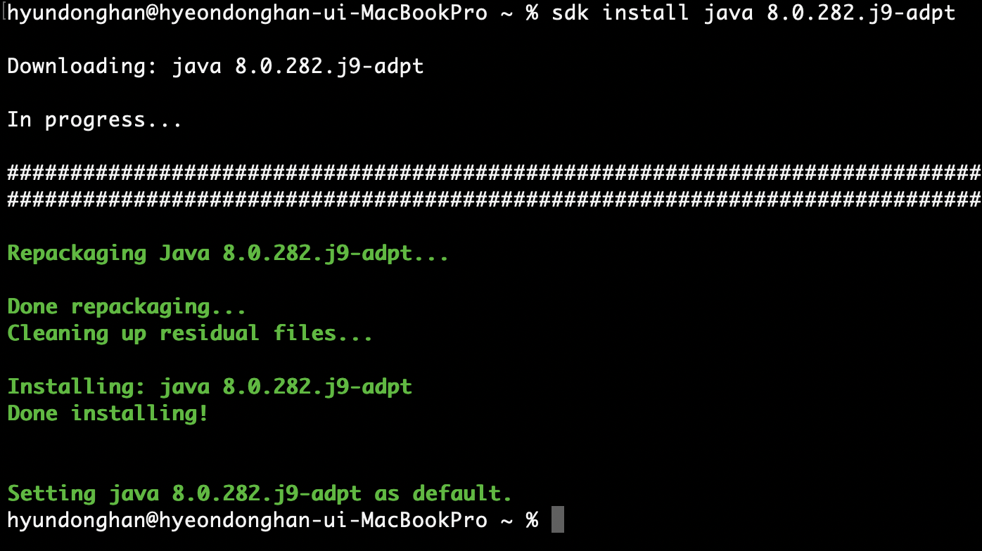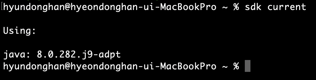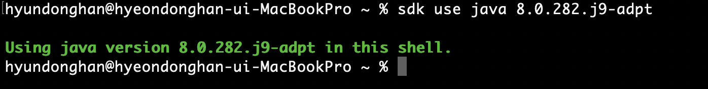 다운로드 완료 후 사용하고자 하는 sdk를 아래 명령어를 입력하여 설정합니다.