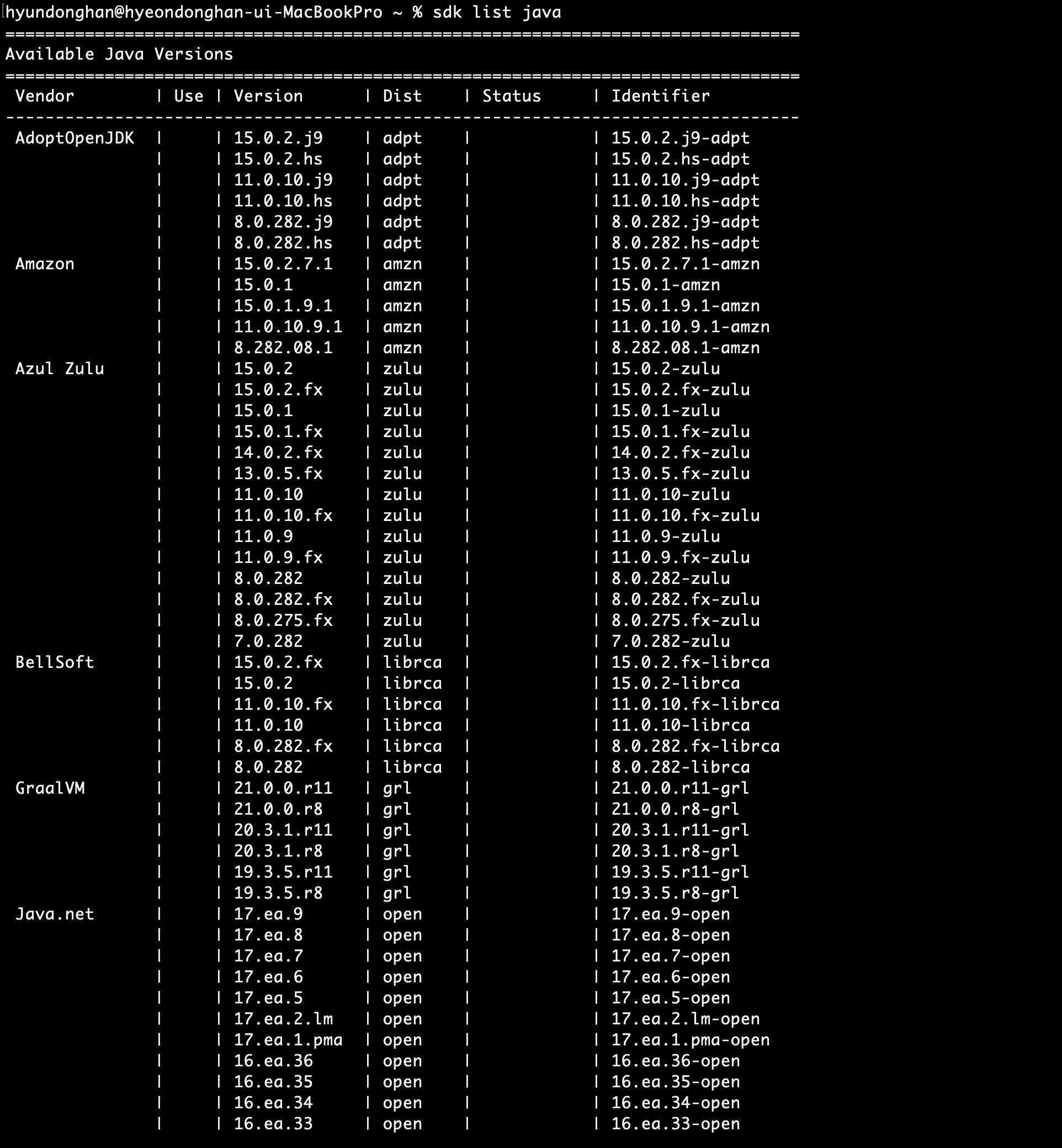 다양한 java sdk를 사용하는 경우에는 sdkman을 사용해서