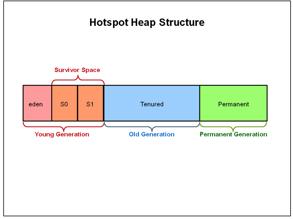 크게 Young 과 Old 으로 나뉘어 져있으며 그림상의 Permenent 영역은 jdk8 에서 부터 사라진 영역입니다.