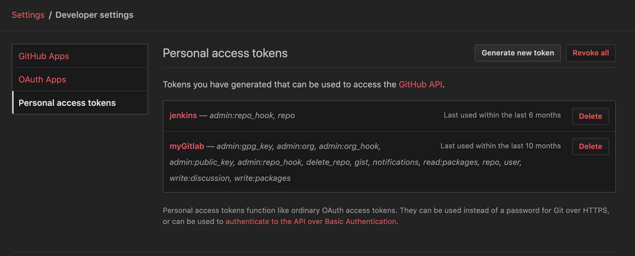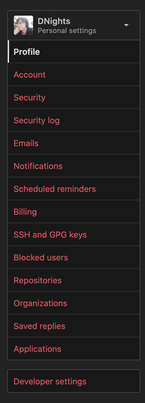 profile 에 맨아래에 보면 Developer settings 가 있습니다.